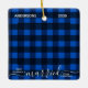 COPYRIGHT © 2020 Judy Burrows, Black Dog Art - All Rights Reserved. First Christmas Married Blue Plaid Newlywed Photo Ceramic Ornament