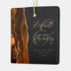 This elegant modern ornament features a burnt orange watercolor agate design trimmed with faux gold glitter. Easily customise the gold-coloured text on an off-black background, with the names of the bride and groom in whimsical handwriting calligraphy over a large grey ampersand. The words "First Christmas Married" appear in serif font along with the customisable year.
