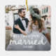 This trendy and whimsical holiday ornament says "First Christmas Married" with causal, hand-drawn lettering for a chic and up-to-date look. Add two of your favourite wedding photos for a stylish keepsake of your big day!