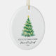 Create your own first Christmas married ornament featuring custom names and year alongside elegant watercolor Christmas tree design.