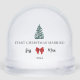 Celebrate your First Christmas Married with our charming couple's snow globe! It features a beautiful snow-covered Christmas tree on a crisp white background, adorned with a stylish red bow for a coquette touch. The bold black text and elegant script personalise it with the couple's names and wedding date, making it the perfect keepsake to commemorate their first Christmas together. A timeless and meaningful gift for newlyweds!