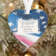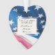 Patriotic First Christmas Married ornament depicts the red, white and blues stares and stripes of the American flag. It features the names and date of the bride and groom. The back inspirational quote, "Two lives united in friendship, Two friends united in love, One love united in Christ."