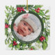 Decorate your tree or give a special gift this holiday season with this elegant photo in a wreath design christmas ornament, and matching decor. This dog christmas ornament features a watercolor green and red wreath with holly and berries. Personalise with name and year . This first christmas ornament is perfect for baby, pets, dog, grandparents and newlyweds. Visit our collection for matching photo christmas cards, home decor, and gifts. COPYRIGHT © 2020 Judy Burrows, Black Dog Art - All Rights Reserved. First Christmas Mistletoe Wreath Custom Baby Photo Ceramic Ornament