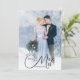 Newlyweds photo Christmas holiday season greeting card or wedding announcement featuring 2 photos (a full-bleed photo on both sides), the title FIRST CHRISTMAS AS MR AND MRS on the front and your custom greeting on the back (the sample shows MERRY CHRISTMAS) in a modern, elegant calligraphy script typography in your choice of colours to coordinate with your pictures. ASSISTANCE: For help with design modification or personalisation, colour change, transferring the design to another product or if you would like coordinating items, contact the designer BEFORE ORDERING via the Zazzle Chat MESSAGE tab below or email makeitaboutyoustore@gmail.com.
