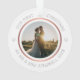 This personalised Christmas ornament features a modern faux rose gold design. Personalise the names, year and wedding photo. It is double sided. The front will have a black and white photo and the back has your original colour photo.