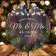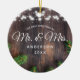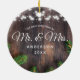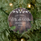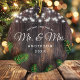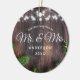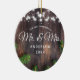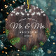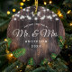 First Christmas Mr & Mrs Wood Winter String Lights Ceramic Ornament. This design features beautiful string lights, rustic wood and pine needles!