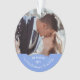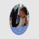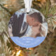 Elegant, chic "Our First Christmas as Mr. and Mrs." personalised photo Christmas ornament for newly married couples, with cursive typography / hand lettering, and a frame of white and silver snowflakes and little stars. Make sure you personalise the two photos, the family name, and the year. Also remember to personalise the text on the back with the names of the bride and groom (as well as, if you wish, the words "married and merry").