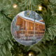 Commemorate your first Christmas in your new home with this beautiful modern keepsake ornament. The white text reads "First Christmas in our new home," with the words "new home" in elegant handwriting script with flourishes before and after. Replace the sample image with a photo of your new house and add your family's last name. A dark gradient filter helps make the text pop.