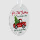 Modern Brush Script Our First Christmas in our New Home Ornament includes Watercolor Vintage Red Truck with Christmas Tree - Photo Back