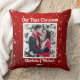 Keep the memory of your First Christmas together with this Photo Pillow designed with your favourite Image, Your Names, and the Year. The front also includes the text: Our First Christmas. The background is designed with white stars on a red background both front and back. To personalise, simply insert your image into our template, replacing the sample photo. Adjust to the centre if necessary. Next, insert your Names and Year into the template, replacing the sample text.