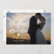 Modern holiday card featuring the words "our first Christmas as Mr. & Mrs." in a modern handwritten script with your photo displayed behind. The back of the card features faux silver glitter snowflakes.