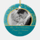 Our Photo First Christmas Ornament features a beautiful gold floral teal blue background. Personalise with your information and date and you're all set to go! Wonderful dated keepsake gift for your first christmas and a great addition to you christmas ornament collection.