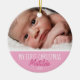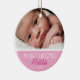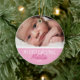 Personalised baby girl keepsake pink christmas ornament featuring 2 photos of your cute baby, the words "my first christmas", their name, and the year.