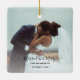 First Christmas Photo Signature Script Newlyweds Ornament. Design features a customisable photo on each side. Our First Christmas and Mr and Mrs on the front and Merry and Married on the back in a hand-lettered signature script on this Christmas Holiday ornament. This modern elegant design can be personalised by clicking on the 'Personalise' button. Custom orders are available at truullc@gmail.com.