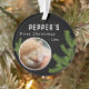 First Christmas Pine Kitten Cat 2 Photo Keepsake Ornament. Cute first Christmas kitten photo ornament with Christmas tree branches. Personalise the ornament with your cat`s photo on the front and on the backside of the ornament, name and year - insert your favourite kitten photo. You can use this custom ornament for any pet. A lovely and cute holiday keepsake for a cat owner.