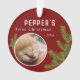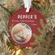 First Christmas Pine Kitten Cat 2 Photo Keepsake Ornament. Cute first Christmas kitten photo ornament with Christmas tree branches. Personalise the ornament with your cat`s photo on the front and on the backside of the ornament, name and year - insert your favourite kitten photo. You can use this custom ornament for any pet. A lovely and cute holiday keepsake for a cat owner.