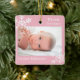 First Christmas Pink Custom Photo with Snowflakes Ceramic Ornament