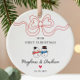 Celebrate your love this holiday season with our personalised Christmas ornament featuring an adorable snowman couple adorned with a trendy ribbon bow. This charming keepsake is perfect for commemorating your first Christmas together, adding a touch of warmth and joy to your festive decor. Crafted with care, it can be customised to include your names or a special date, making it a unique gift that will be cherished for years to come. Embrace the spirit of the season and create lasting memories with this delightful ornament.