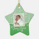 Festive green stripes and snowflakes photo ornament. Add any photo and change text. Great for newlyweds, new baby, family photos and more.