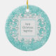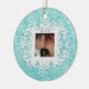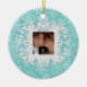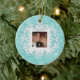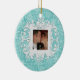 "First Christmas Together" personalised photo ornament in winter snowflakes - white on aqua with customisable snow medallion on back. Upload your favourite couples photo! Customise the Date too! Perfect Holiday gift or stocking stuffer for husbands and wives, engaged couples, boyfriends and girlfriends and military sweethearts. Customise it with your name and date on back.
