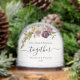 Celebrate your first Christmas as a couple with this elegant, boho floral bouquet photo snow globe. The bouquet has burgundy, pink and warm orange flowers with green foliage accents. Easy to customise with your names and year on the front and your photo on the back.