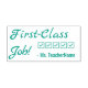 This inspiring rubber stamp design features the motivating message "First-Class Job!" and a personalised tutor's name. It also features a decorative check mark. It could be used by a school teacher, educator, or tutor when grading student work, to acknowledge that a student has done an exceptional job.