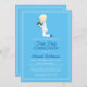 Invite friends and family to celebrate your sons First Communion with this invitation featuring a blonde boy in a white communion suit holding a rosary on a soft blue background. Back features soft blue background and double white frame with blue cross, doves and white banner with text "My First Communion". Easy to personalise with custom options. Use the "Personalise" button to customise the product, or add text.