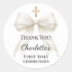 First Communion bow ivory pearls cross thank you Classic Round Sticker