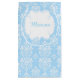 First Communion Brunette Hair Boy Thank You gift bag to present to your guests after the ceremony, featuring a green Damask pattern.