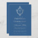 First Communion Classic Blue Faux Silver Crest Boy Invitation