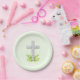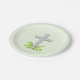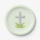 Pearl white cross on leafy greens on mint green paper plates in 7" or 9" size. Perfect design for First Communion, Baptism, Christening, Dedication or any religious special occasion. MATCHING items in our store.