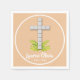 Pearl white cross on leafy greens on peach background on napkins in your choice of 2 sizes. Perfect design for First Communion, Baptism, Christening, Dedication or any religious special occasion. MATCHING items in our store.
