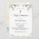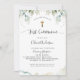 Elegant First Communion invitation with exquisite Eucalyptus greenery and watercolor stains. ideal for both, boy or girl First Communion. Modern elegant handwritten calligraphy details. Ability to add both ceremony/Sacrament and reception or brunch, lunch, dinner, reunion details. Back with beautiful watercolor background. Part of our "Elegant Greenery Eucalyptus Wedding and Events" collection with a variety of coordinating products available. Modern, elegant and simple style.