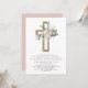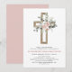 First Communion Gold Cross Blush Pink Floral Invitation