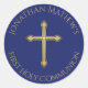 First Communion Gold Cross Monogrammed Name Blue Classic Round Sticker