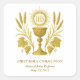 Celebrate a sacred milestone with this elegant First Holy Communion design. Featuring a traditional gold chalice and host design with “IHS” and surrounded by wheat and grapevines, this personalised sticker or envelope seal honours the Real Presence of Christ in the Holy Eucharist. Perfect for Catholic sacramental celebrations.
