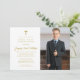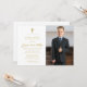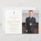 Modern and minimalist design features a gold cross and a contemporary font. The simple script adds used for the boy's name adds an open and airy vibe. It is very easy to insert your photo. All of the text can be edited.