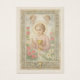 This exquisitely adorned holy card features the Christ Child in a moment of deep Eucharistic reverence. Clothed in a rose-hued tunic and crowned with a golden halo, the Infant Jesus gently raises a radiant Host inscribed with “IHS,” while lovingly clasping a golden chalice—symbols of His Real Presence in the Blessed Sacrament. Two adoring angels hover above in prayerful awe, their presence a reminder of Heaven’s nearness at every Holy Communion. Surrounded by a garland of blooming roses and lilies, the image is framed in an ornate liturgical gold border with intricate Eucharistic detailing, including a chalice motif and decorative sacred flourishes. Ideal for First Holy Communion, Eucharistic Adoration, or as a cherished devotional keepsake, this card draws the soul into the mystery of Divine Love.