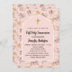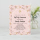 An arch frame on a pattern of pampas grass and pink flowers and a golden cross. Personalise and add a name and details.