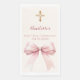 A cream, beige background color. Decorated with a large pink bow and a golden cross. Personalize and add the name and date.