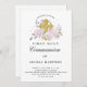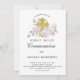 First Communion Pink Floral Gold Cross Invitation