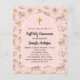An arch frame on a pattern of pampas grass and pink flowers and a golden cross. Personalise and add a name and details.