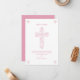 This modern First Holy Communion Thank You Card features an elegant drawn pink and white floral cross. Ideal for thanking guests for joining a girl's religious celebration, it can be customised with your child's name and a personal note. The background colour can also be changed to your liking.