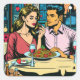 A couple on a date at an Italian restaurant sharing a plate of spaghetti. Cute comic book style cartoon pop art ai.