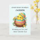 Celebrate your great-great-grandson’s very first Easter with a personalised card just for him! A cute chick hatches from its shell, surrounded by bright spring flowers, set against a soft pastel teal background that enhances the warmth of the season. His name on the front makes this card even more special, creating a one-of-a-kind keepsake for his milestone first Easter. Filled with love and joy, this is a heartfelt way to celebrate his first holiday in a truly personal way!