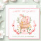 The cutest Easter bunny in a pot with Easter eggs, pink, Easter card for baby girl's 1st Easter. Easily personalise this Easter card with your own text. - Kate Eden Art.