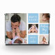 First father's day gift idea -A modern Photo Block with a collage grid created with 4 pictures and message on a trendy blue colour block.