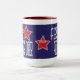 This is a handsome blue and red graphic design that says First Father's Day.  Be sure to change or delete the year on this mug.  Great for the new father that you know.