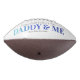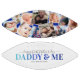 Cute new dad fathers day football gift featuring a photo collage of 12 family pictures for you to replace with your own, the saying "happy first father's day" in a elegant script font, the words "daddy & me" in a bold blue gradient typographic font, and the childs name.