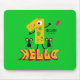 Funny big yellow number one with mouses, pencil and text HELLO FIRST GRADE